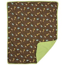 A hard day on safari can wear a kid out, so when bedtime comes you can wrap them up in the Too Good by Jenny McCarthy - Zoo Zoo 2 Ply Knit Blanket. The face features a zoo-animal motif on a chocolate background, and the reverse is a vibrant and complementary lime green. You can easily machine-wash on gentle, and since its Oeko-Tex certified, you won't need to worry about exposing your child to harmful chemicals and dyes that may be present in other, non-certified textiles. This blanket looks great on its own, but also coordinates with the rest of the Too Good by Jenny McCarthy - Zoo Zoo collection. Try adding a bit more of that jungle flavor by picking up the 5 pc. Reversible Crib Set. About Pem America Makers of high quality handcrafted textiles, Pem America Outlet specializes in bedding that enhances your comfort and emphasizes the importance of a good night's rest. Quilts, comforters, pillows, and other items for the bedroom are made with care and craftsmanship by Pem America. Their products cover a wide range of materials, styles, colors, and designs, all made with long-lasting quality construction and soft, long-wearing materials. Details like fine stitching, embroidery and crochet decorations, and reinforced seaming make Pem America bedding comfortable and just right for you and your family. Reversible blanket for your zoo-themed nursery. Chocolate and animal print face with lime reverse. Oeko-Tex certified, 100% organic cotton. Machine-washable on gentle. Dimensions: 40L x 30W inches.