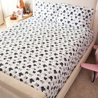 David & Goliath SKULSMF-S Arrrrrgh! For all bone heads. David & Goliath's signature black and grey skull and crossbones with bandanas and pirate hats on a contrasting white background. Sure to add some edgy flair to any bedroom! Features: -Sheet set available in Twin, Full or Queen sizes. -Pillowcase available in Standard size. -Color: Blue / Grey / White. -Material: Polyester. -Lightweight microfiber fabric engineered specially. -Provides the breathability and comfort of a high thread count cotton at a fraction of the price. -All of this with a sense of humor. -Striking color registration. -Machine wash for easy care.