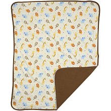 - 2 Ply knit blanket with stars and jungle animals printed face and a chocolate reverse